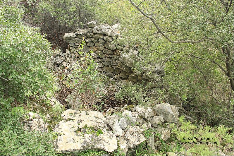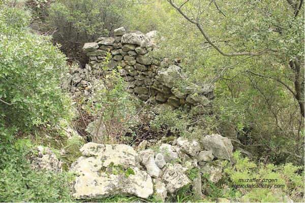 Yol üzerinde kabaca yapılmış teras duvarları da var, şimdi bitkilerin arasında kaybolmuşlar. Bu fotoğrafı 2010 yılında çekmiştim.