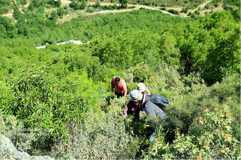 10 haziran Tarihinde Papazın Evi’ne Marmaris Müzesinden görevli arkadaşlarla çıktık, içlerinde Arkeolog ve Sanat Tarihçi vardı. Kendilerine burası ile ilgili birçok kez başvuru yapılmış, burasının korunması istenilmiş ve bugün yapıda inceleme yaparak elde ettikleri bilgileri gerekli yerlere verecekler. Ona göre bir şey yapılıp yapılmayacağı belli olacak. Papazın Evi’ne çıkan yamaçlarda bitki örtüsü sık, sandal toplulukları ve bele kadar gelen dikenli çalılık kısımlar var. Şimdiye dek buraya kış aylarında çıktım, bu mevside bitkiler daha zarar verici oluyor, bir de yılan gibi tehlikeleri de dikkate almak lazım, göremediğiniz yerlere basmamaya çlışmak lazım. Bunun için sık bitkilerin içine düşmeden o arazideki en uygun parkurdan yürüdük. Dik bir arazi, sıcak ta var, birden tırmanınca arada kısa molalar vermek gerekebiliyor.