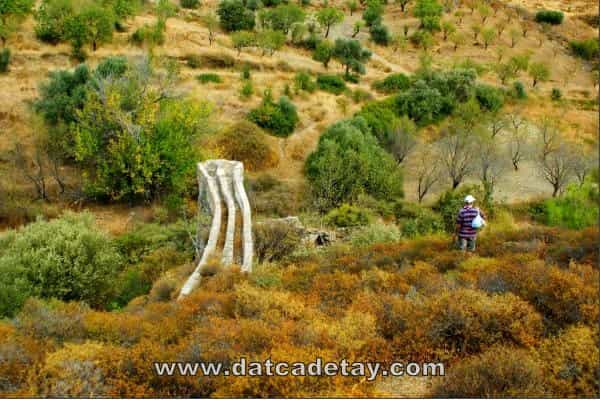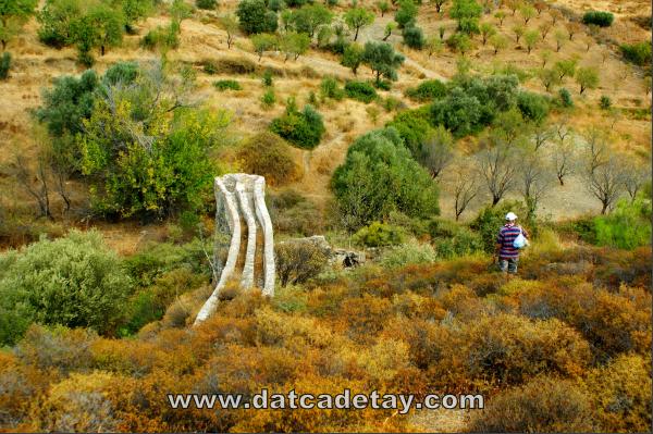 Galamış değirmenini denizden Knidos’a giderken görmüştüm, Yazı Belen Mahallesinden yola çıkarak yarıyola kadar arabayla gittikten sonra yürüdük